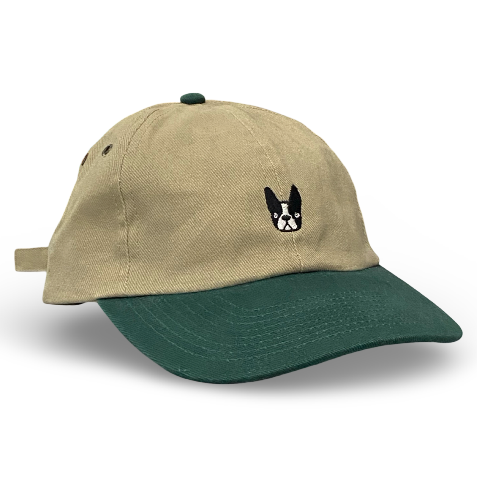 ‘Bonnie’ Boston Terrier hat - green/tan